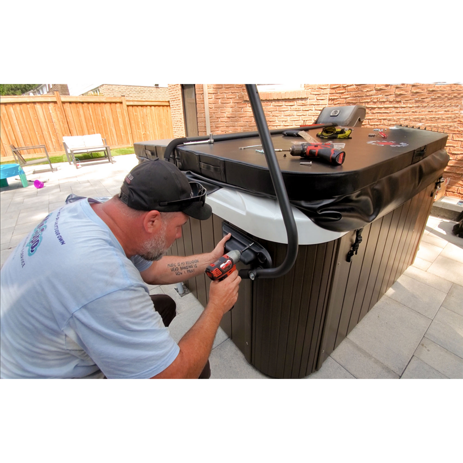 - Cover is cleaned and placed back on the spa
